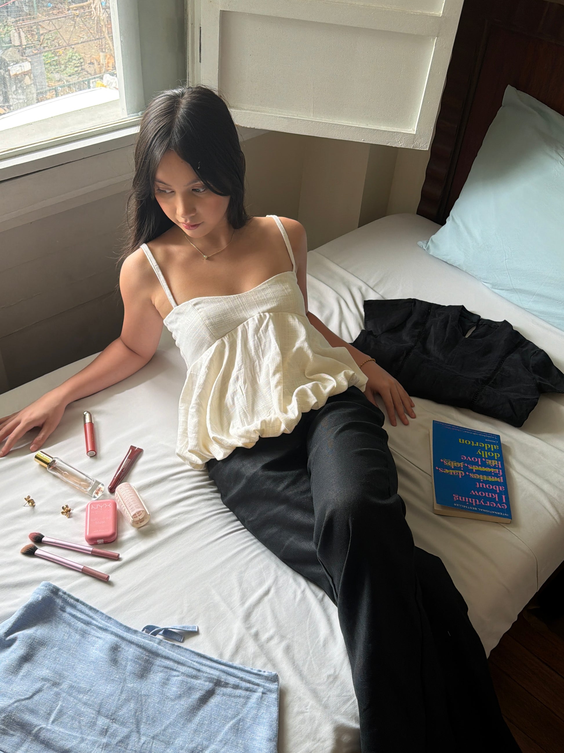 Bubble Trouble top is our playful take on the peplum top featuring a poof bottom, garterized back, and adjustable straps. You perfect go-to piece -- pair it with any of your fave bottoms and you are hot-to-go!
