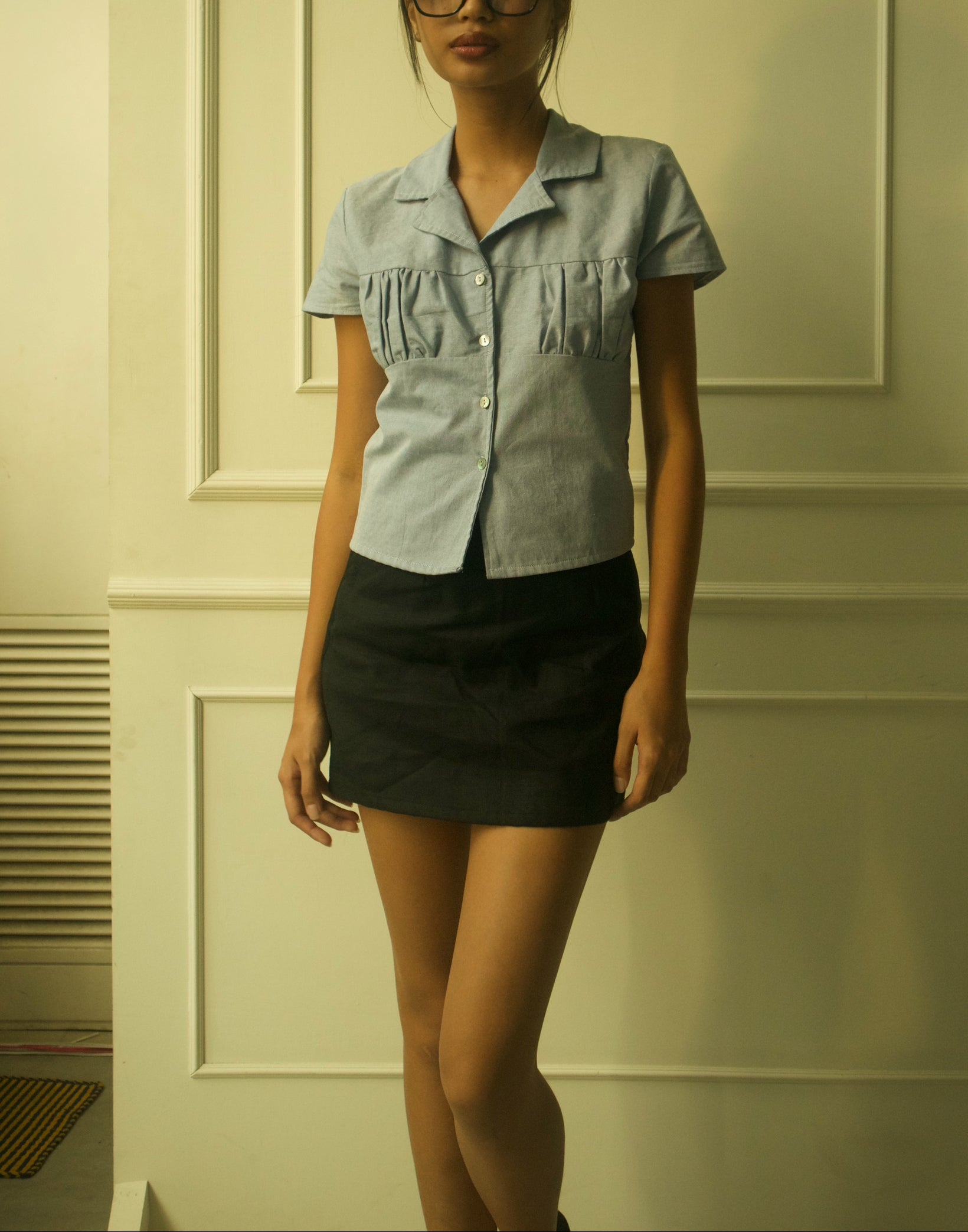 Ivy Polo is a casual and romantic play on your usual button down featuring an eye catching bust shirring detail, cap sleeve and mini capiz shell buttons for a subtle, feminine touch. Meet your new go-to, dress-code friendly top.